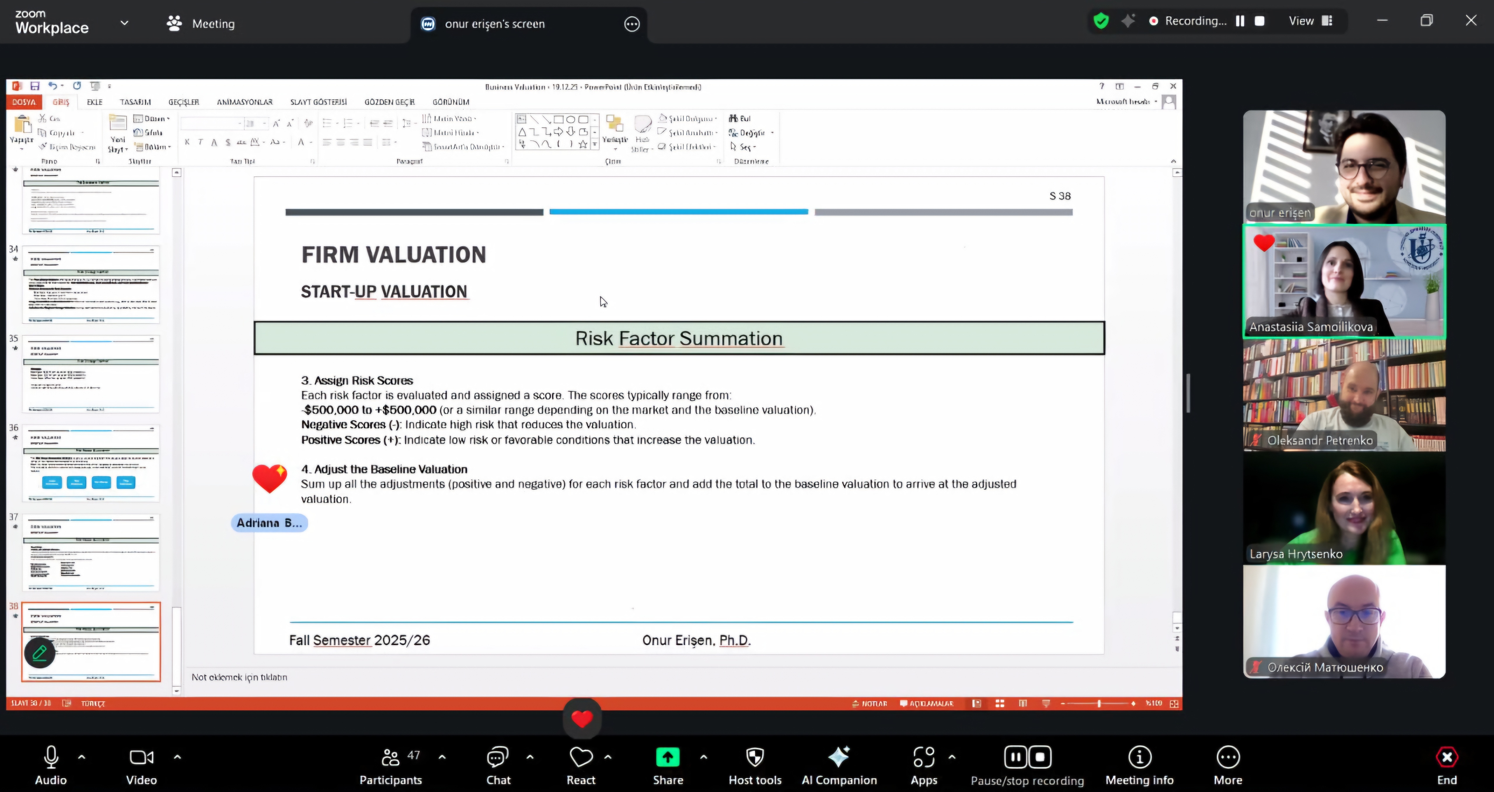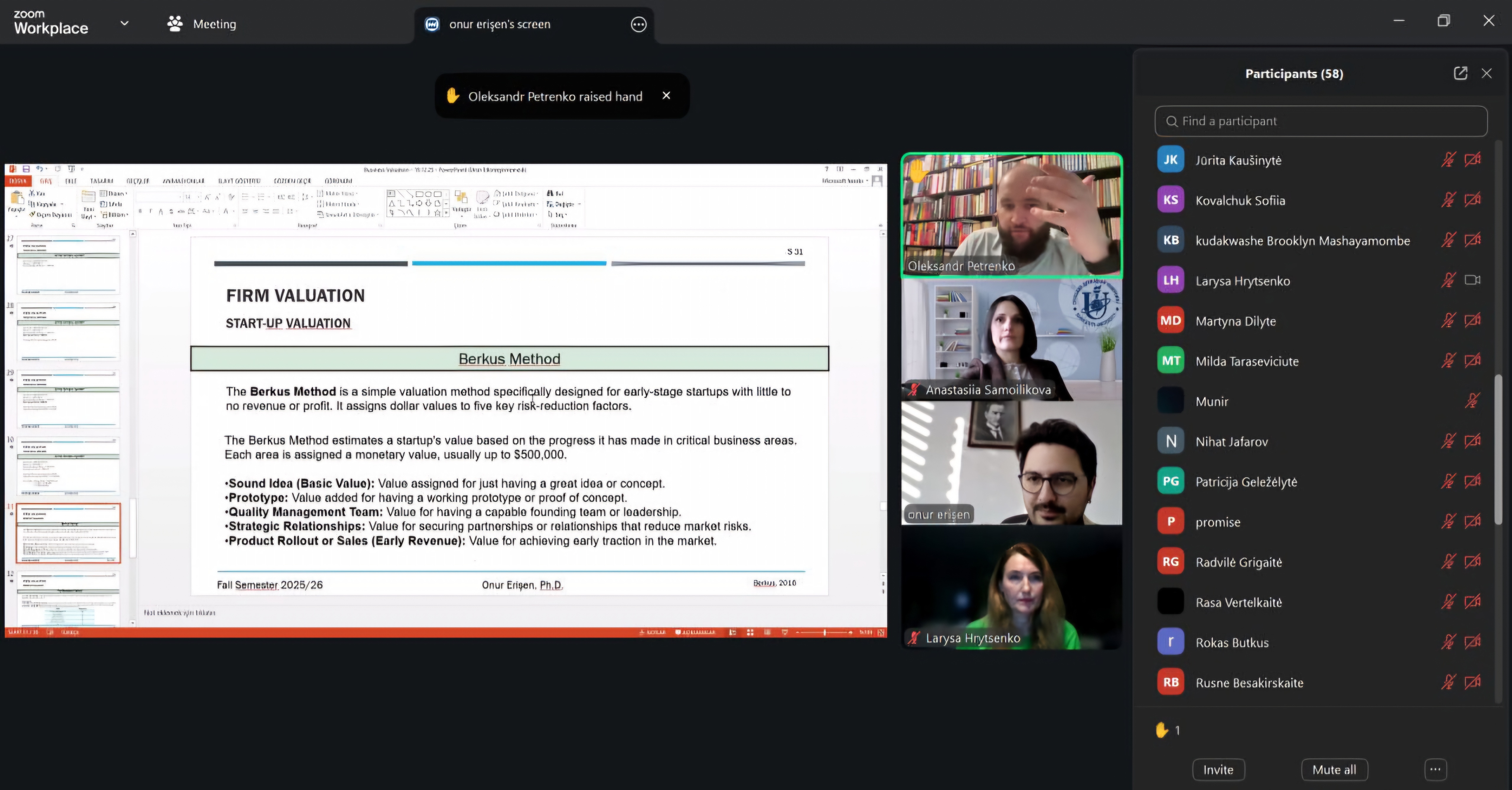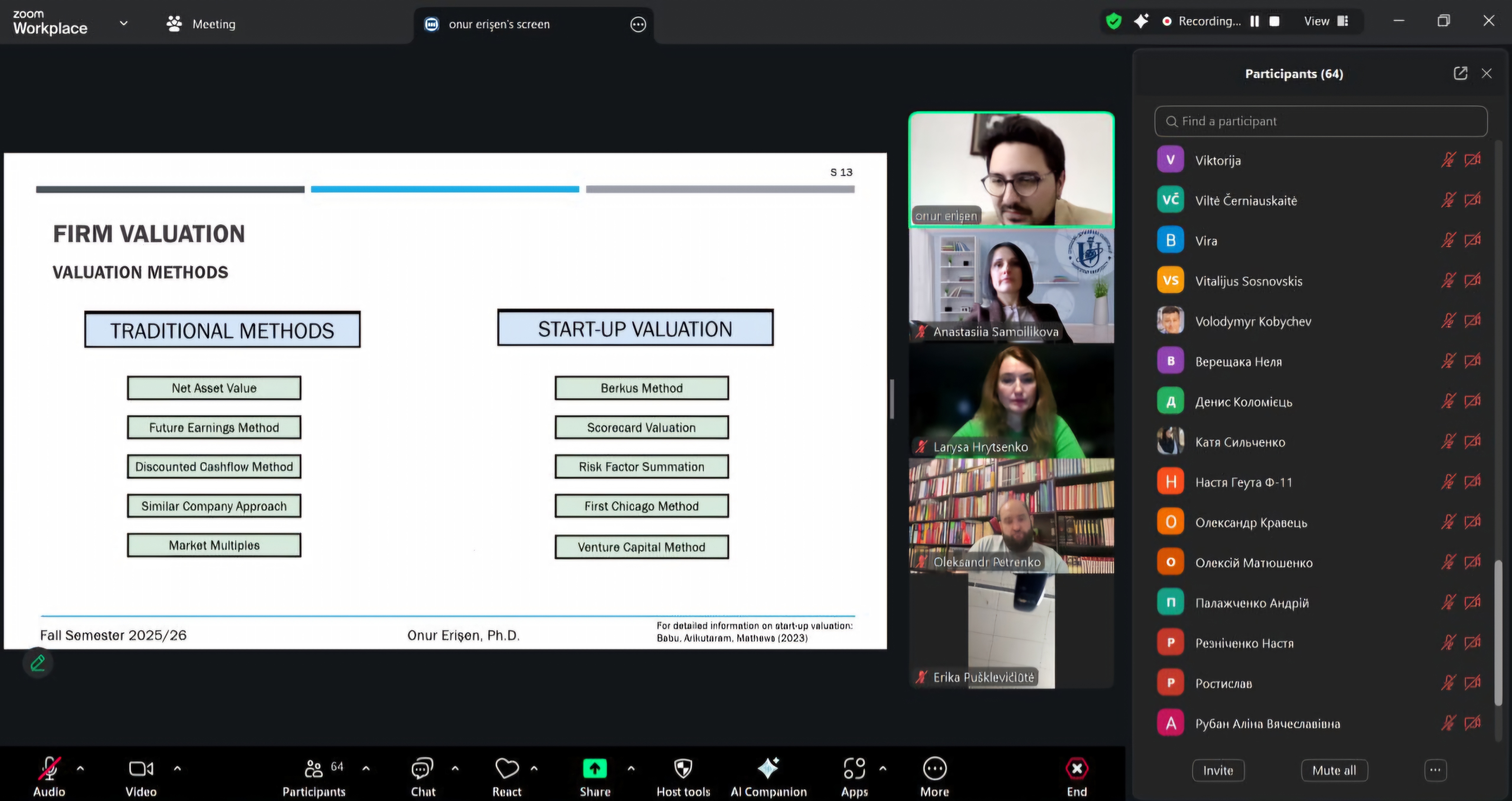 On December 19, within the international virtual academic mobility program “Next Generation Finance: Innovation, Sustainability, and Global Impact,” another lecture took place — “Business Valuation: Traditional and Modern Approaches.”