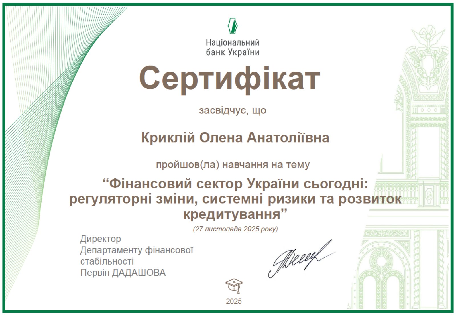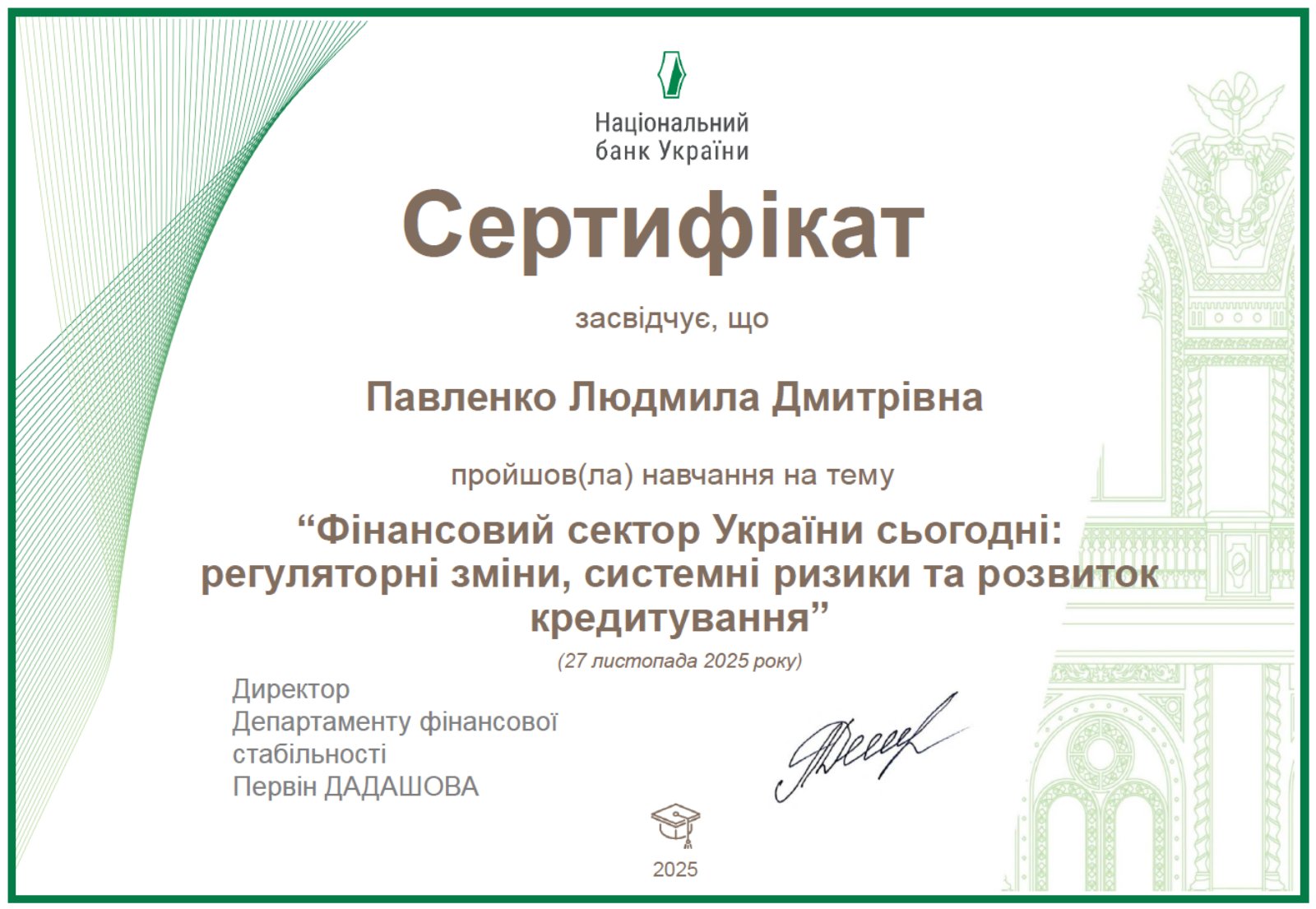 • The state of Ukraine’s financial sector and major development trends – an overview of the dynamics of the banking system, emerging risks, and factors shaping financial resilience.