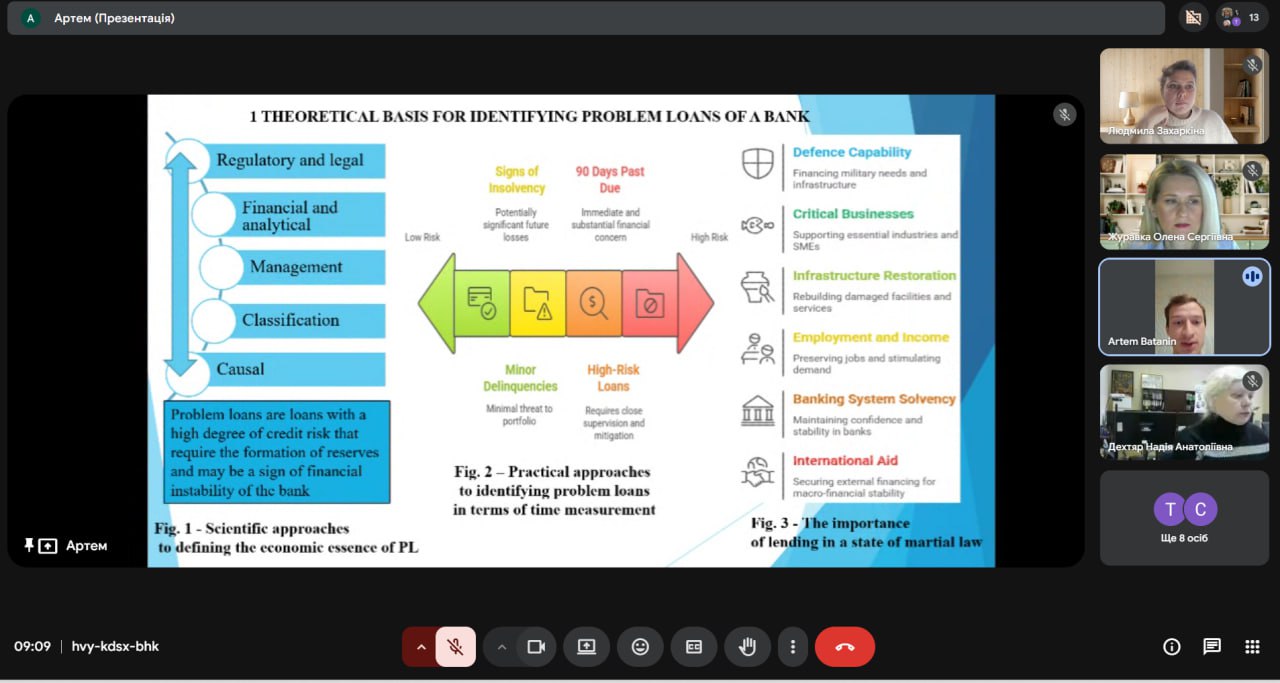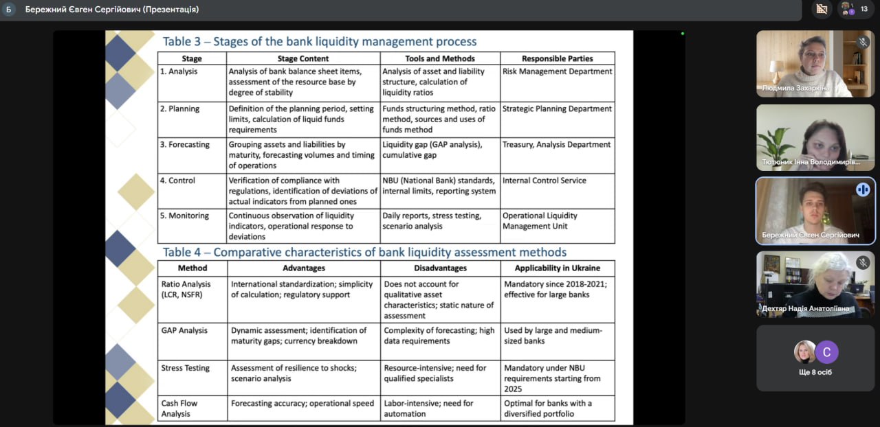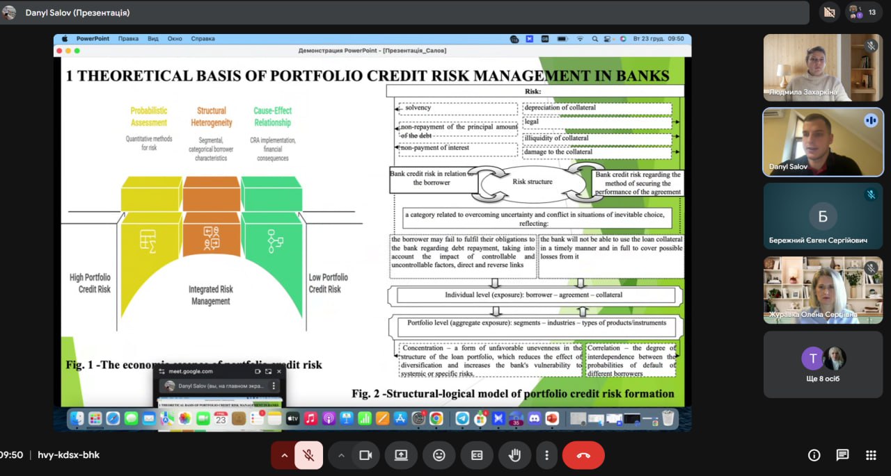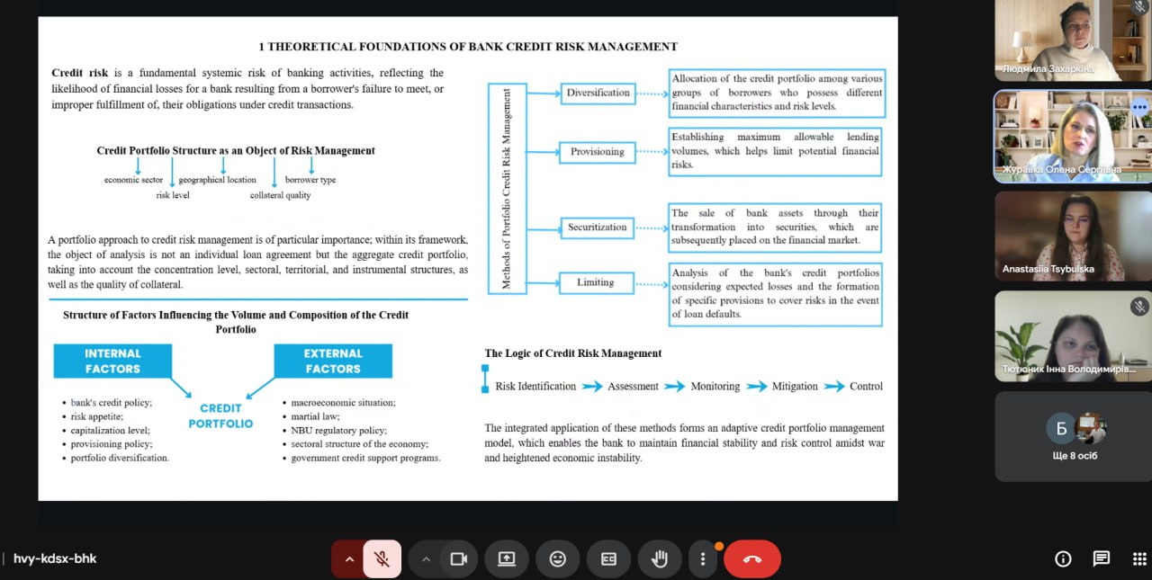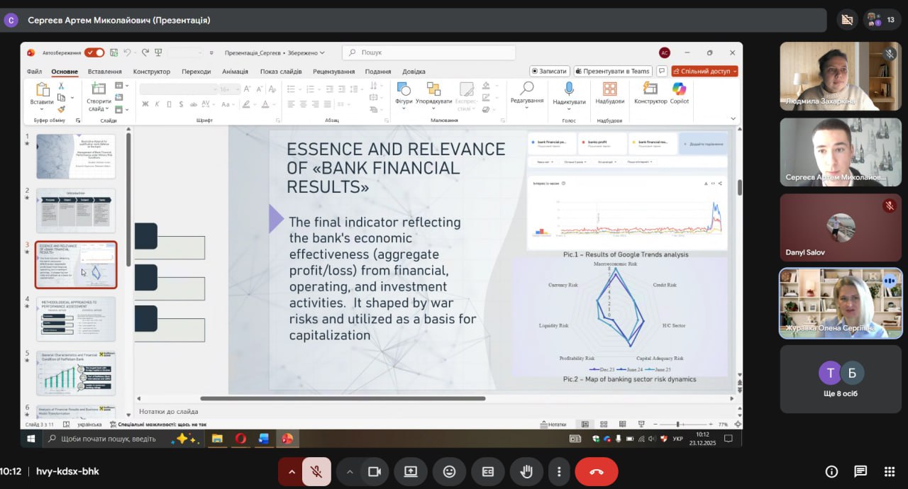 The Master’s students presented the results of their research focusing on financial aspects of banking operations, including liquidity management, financial performance, financial stability, as well as the assessment and mitigation of credit risks under wartime challenges. The theses were based on the analysis of relevant financial data and contained practically significant findings.