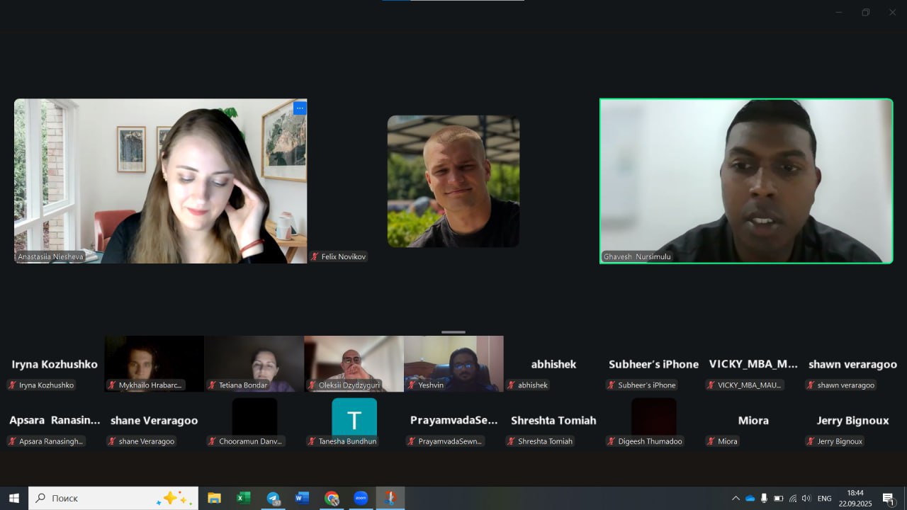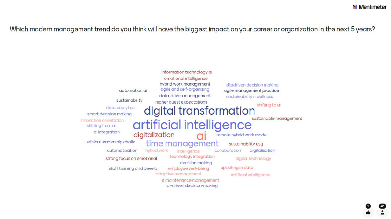 During the opening meeting (September 22, 2025), participants discussed the major challenges faced by modern managers: digitalization and the use of artificial intelligence, maintaining work-life balance, the impact of GenZ, global crises, and political instability. The discussions took place in small mixed groups (Ukraine – Mauritius), which helped students develop intercultural communication and teamwork skills.