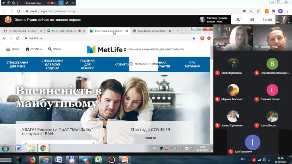 До онлайн заняття долучилася фінансовий консультант брокерської компанії «StarLife» Рудик Оксана Василівна, яка провела для студентів майстер-клас по програмам пенсійного страхування провідної страхові компанії на ринку страхування життя – ПрАТ “Metlife”. Розглядали актуальність недержавного пенсійного забезпечення, можливості накопичення пенсійного капіталу в страхових компаніях, строк програм, періодичність і розмір внесків, розмір додаткового інвестиційного доходу, особливості ануїтентного страхування.