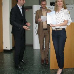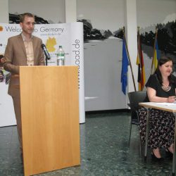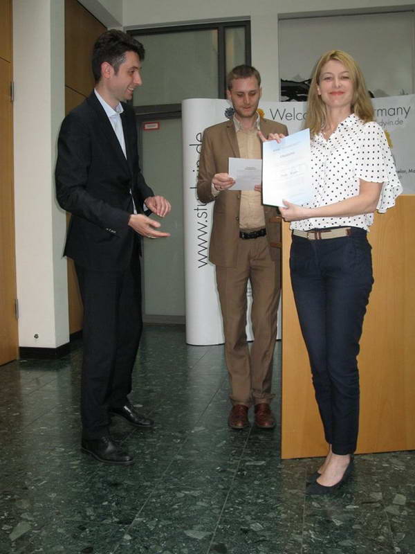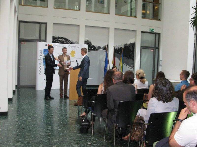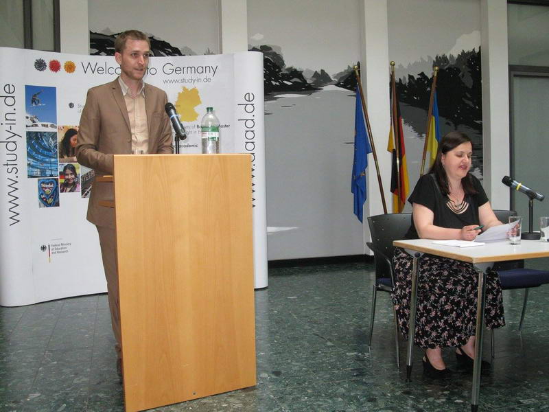 09 червня керівник Інформаційного центру DAAD в Києві пан Флоріан Кюхлер урочисто нагороджував стипендіатів різних програм. Крім того, пан Флоріан Кюхлер, який керував останні п’ять років організацією в Києві, скористався нагодою, щоб попрощатись і представити нову наступницю – пані д-р Ґізелу Ціммерманн, яка з 1 вересня керуватиме Інформаційним центром та працюватиме лектором DAAD у Київському національному університеті імені Т. Шевченка.
