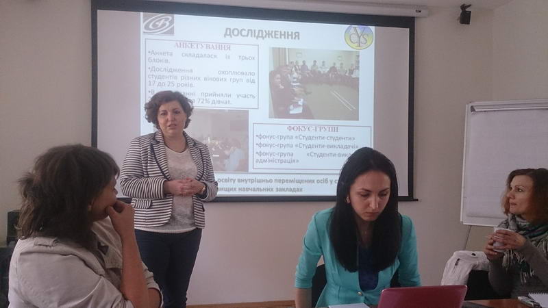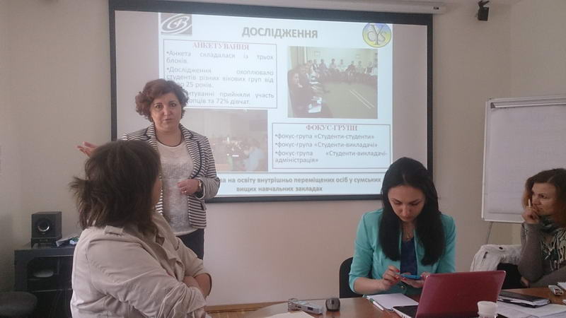 Під час круглого столу учасники доповіли результати проведеного моніторингу доступу переселенців до дошкільної, середньої та вищої освіти, зазначили проблеми, які були виявлені в процесі моніторингу та представили розроблені рекомендації для органів влади.