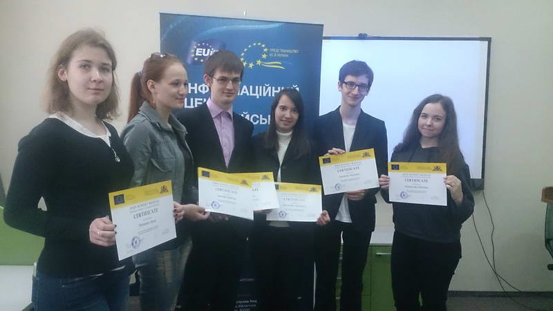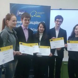 Усі активні учасники заходів в межах грантових проектів Еразмус + були нагороджені сертифікатами про завершення модуля Жана Моне та отримали заохочувальні подарунки від Інформаційного центру ЄС.