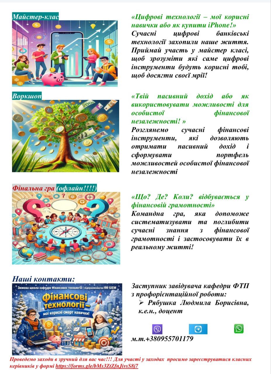 | 8.Формування рекламного буклету ОП кафедри | Рябушка Л.Б., Дехтяр Н.А., Анастасія Федан (гр.БС-11) https://fintech.biem.sumdu.edu.ua/vstup-2024 |