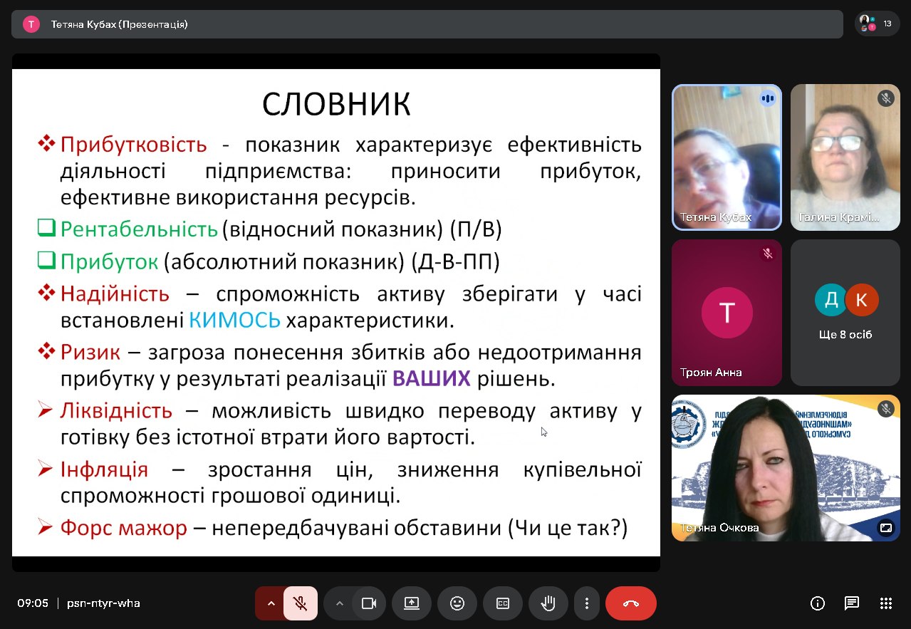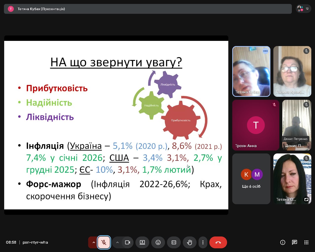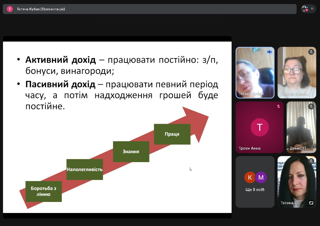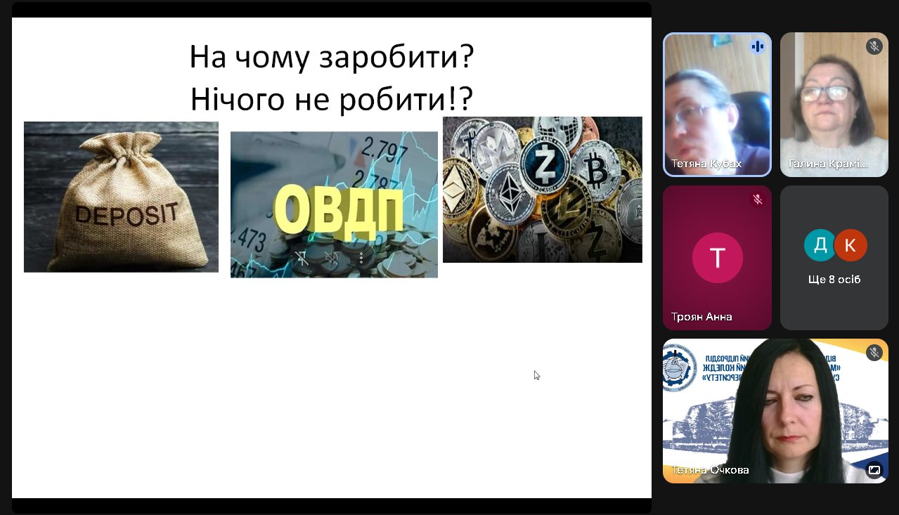 23 березня 2026 року к.е.н., доцент кафедри фінансових технологій і підприємництва ННІ БіЕМ СумДУ Кубах Тетяна, провела профорієнтаційний захід для студентів спеціальності «Менеджемент» Машинобудівного коледжу СумДУ. Під час зустрічі викладачка презентувала доповідь на тему: «Як заробити статки? (Пасивний дохід)», під час якої було розглянуто основні інструменти для інвестування, умови їх придбання та реалізації, а також цінова політика щодо них.