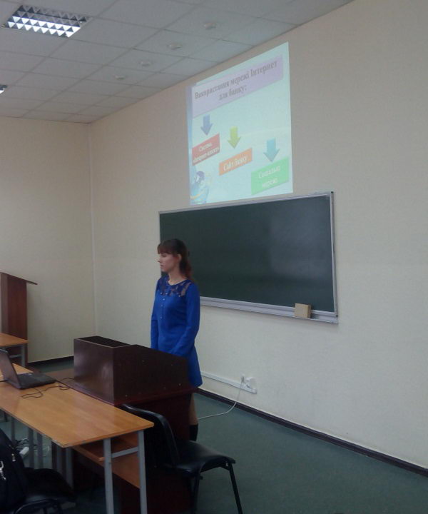 І місце – Рудь Катерина, тема доповіді: «Інтернет як засіб комунікації банку з клієнтами» (науковий керівник к.е.н., ст. викл. кафедри банківської справи Кривич Я.М.);