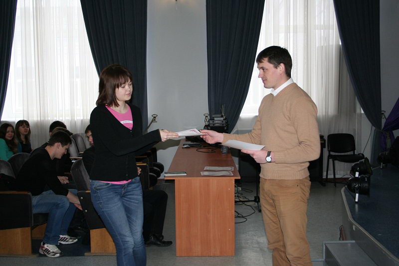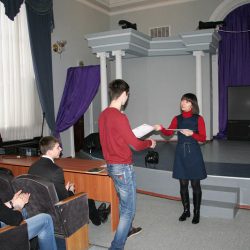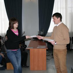 Завідувач кафедри банківської справи Васильєва Т.А. вручила студентам сертифікати про успішне опанування навчальних дисциплін англійською мовою.