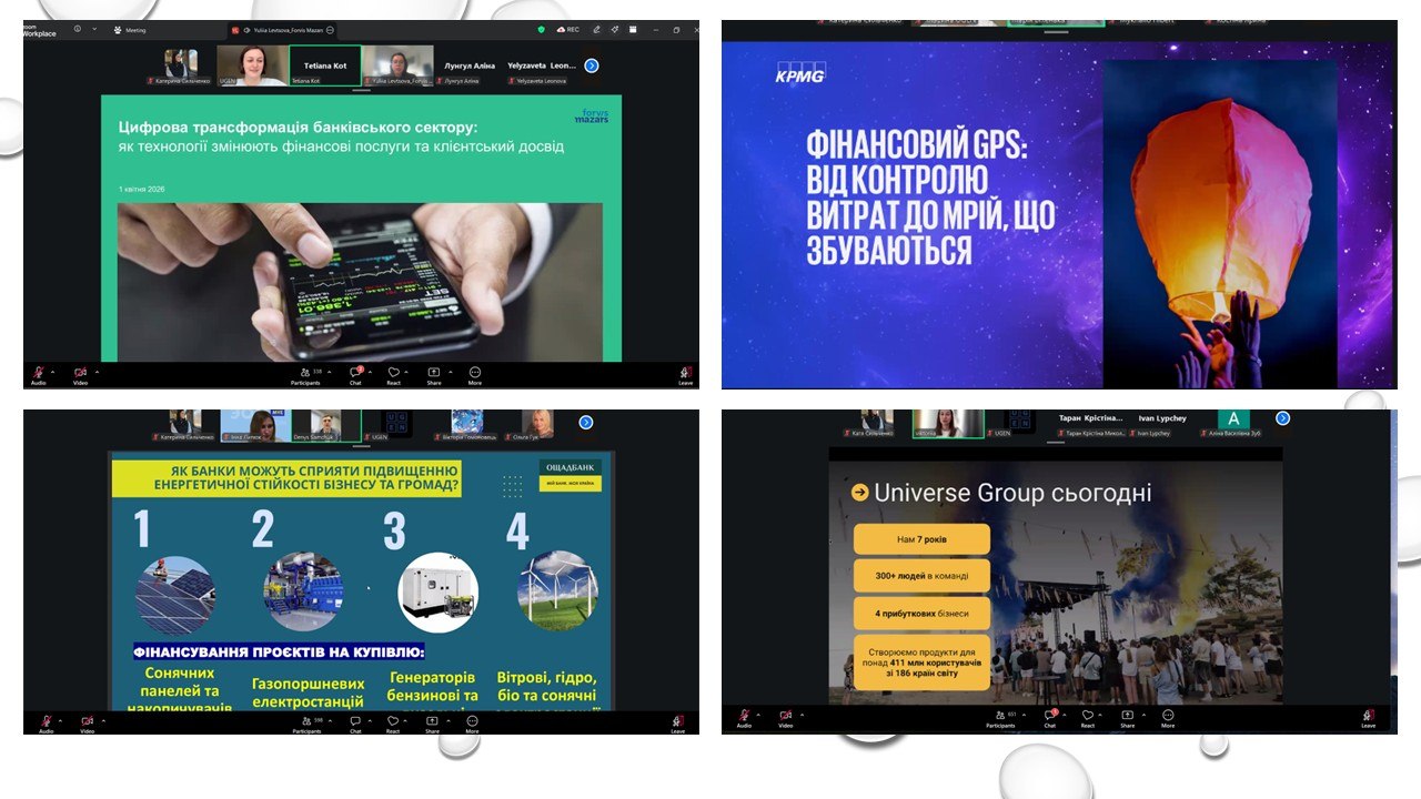 Тематика заходів охоплювала фінансову звітність, ESG, цифрову трансформацію банківського сектору, аналітику даних, зелене фінансування, енергетичну безпеку та сучасні кар’єрні траєкторії у сфері фінансів, банківської справи й суміжних бізнес-напрямах.